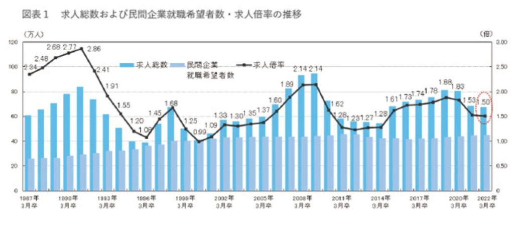 株式会社リクルート:第38回 ワークス大卒求人倍率調査(2022年卒)