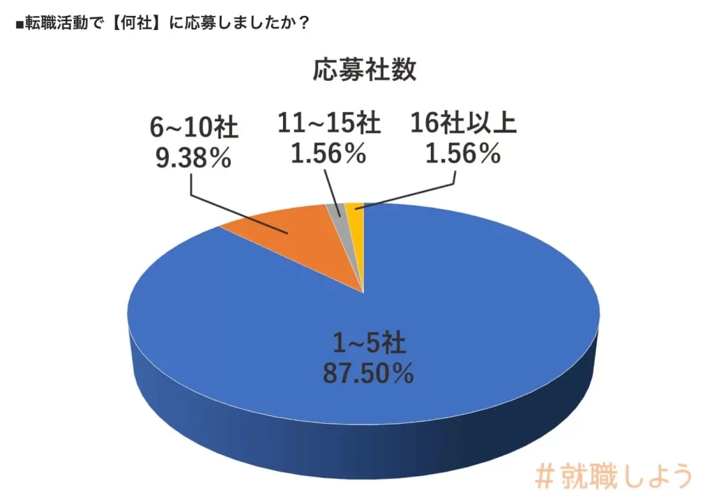 また、実際に受けた企業数も1~5社以内が85%以上で、かなり受かりやすい傾向にあると思います。