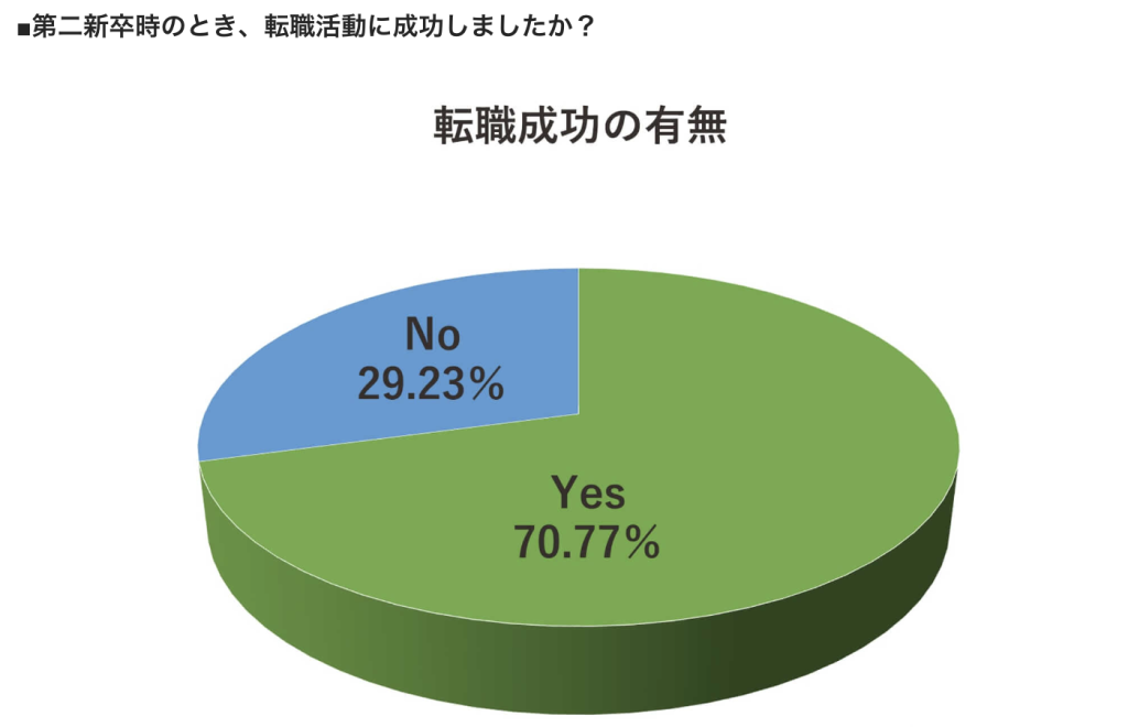 第二新卒で転職に成功した確率は70%を超えているというデータが、実際に出ています!
