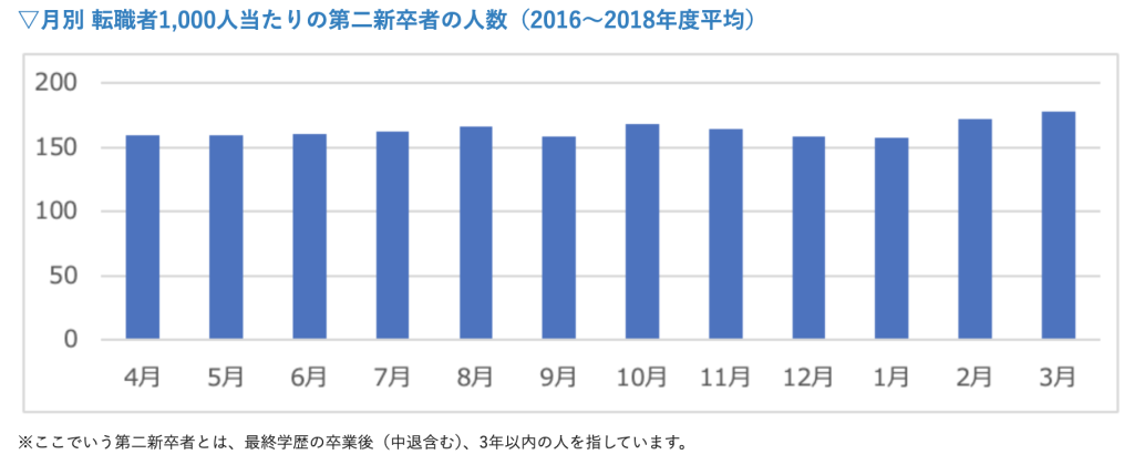 - 一般的に1月から3月が転職に適していると言われているが、実際はそれほど大きな違いはない。