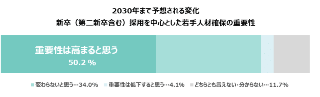 また今後、「第二新卒を含めた若手人材確保の重要性が高まる」と多くの企業が考えているというデータもあります。