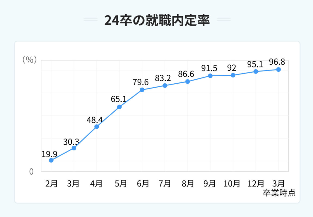 しかし、この数字が示すのは、大多数の学生が最終的には内定を獲得しているという事実です。