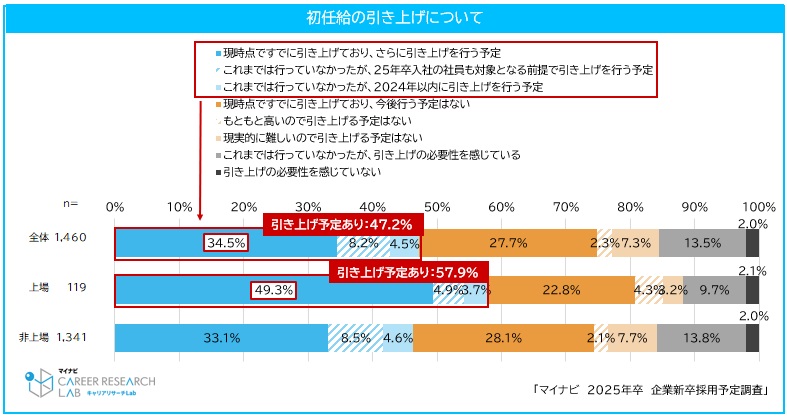 実際に多くの企業が、学生を自社に入社してもらうために、初任給の引き上げを実施しています。