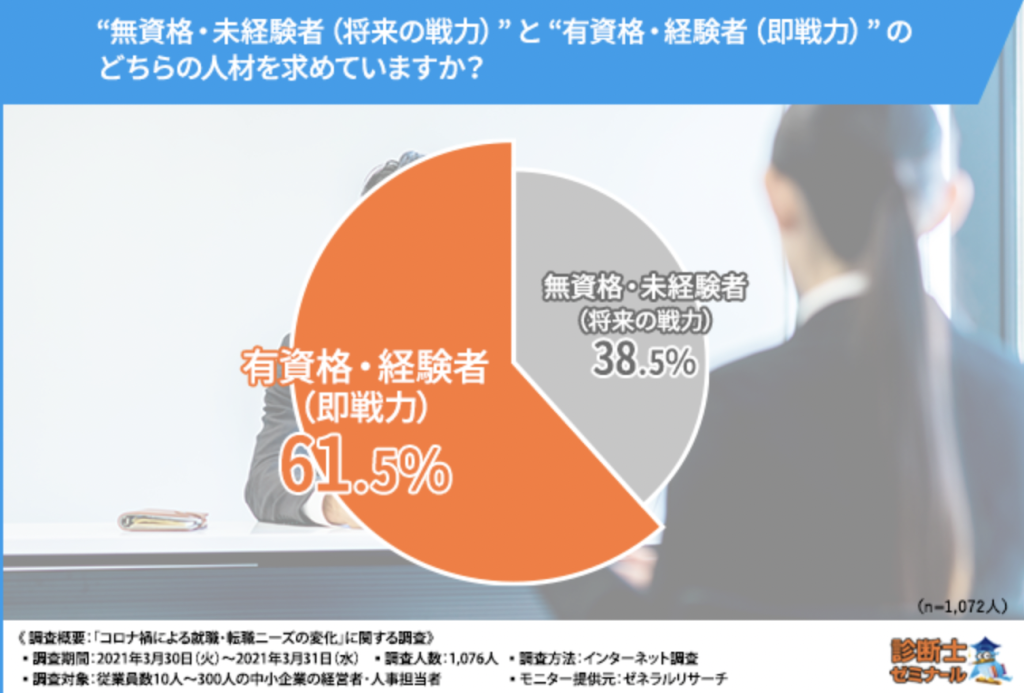ある調査によると、採用時には経験者や即戦力が強く求められていることがわかっています。